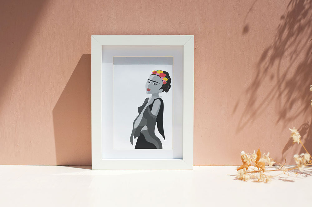 Diese Arbeit entstand als freies Projekt und versteht sich als künstlerische Hommage an Frida Kahlo.