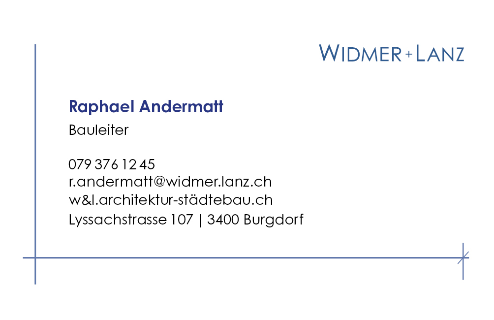 Für das fiktive Architekturbüro Widmer + Lanz wurde eine reduzierte Wortmarke entwickelt. Ziel war es, eine sachliche, klare Wortmarke zu entwickeln, die Präzision, Struktur und gestalterische Zurückhaltung vermittelt. Dekorative Elemente sollten bewusst vermieden werden.